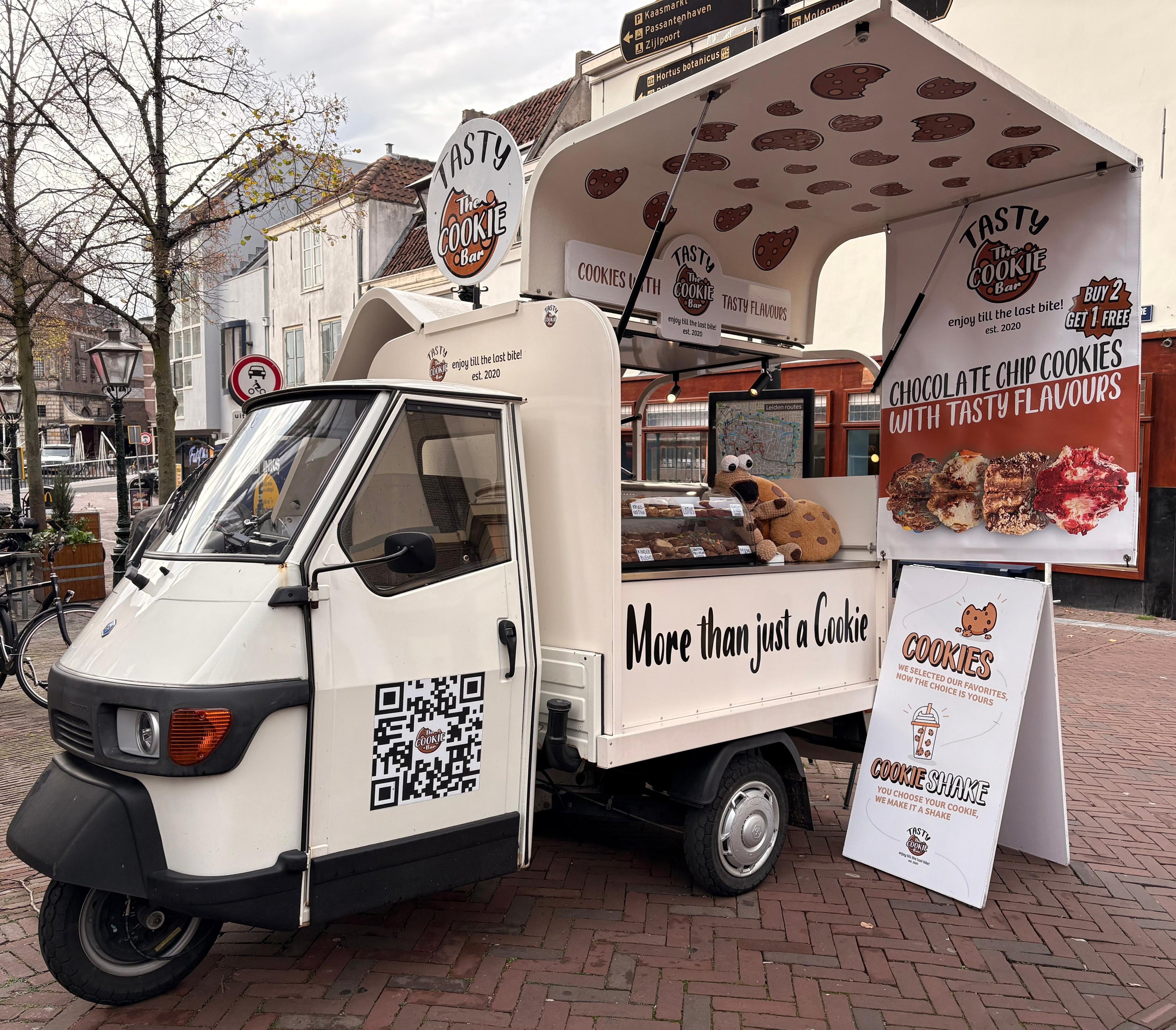 Sinds 2023 hebben we ook onze eigen foodtruck, waar we dagelijks mensen blij maken met onze verse cookies. Of je nu langskomt bij de truck of bestelt via onze website, bij TASTY proef je altijd dezelfde aandacht, passie en versheid waarmee het ooit begon!